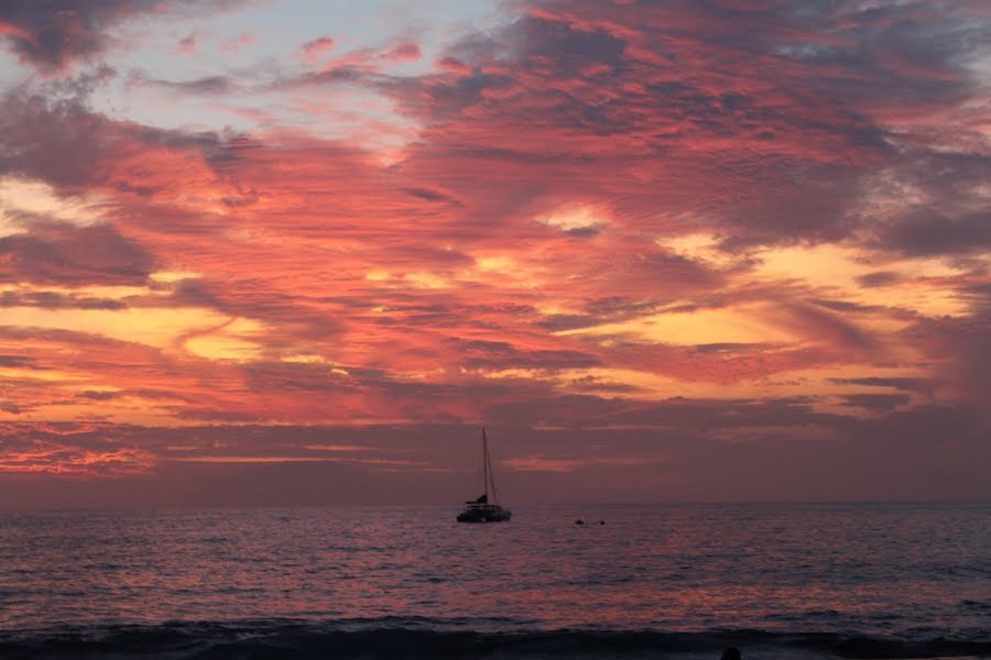 Big Island, North Kona, HawaiiNous avons assisté à un magnifique coucher du soleil de la plage de Mauna Key beach, qui se trouve, encore une fois, dans un resort. Heureusement qu’ils laissent l’accès aux plages au public ! Même s’il y a un garde avec une barrière, il suffit de lui dire que vous venez profiter de la plage pour passer. C’est une plage de sable blanc, mais pas aussi belle que Makalawena, qui est définitivement ma préférée.