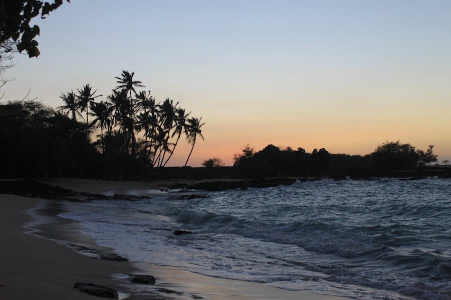 Big Island, North Kona, HawaiiEffectivement, il y a peu de monde, et c’est comme un petit paradis sur terre. C’est une plage naturelle, où l’homme n’y a pas mis sa main. Une plage tantôt à l’ombre des palmiers, tantôt parsemée de pierre de lave, avec son eau claire cristal, elle est à tomber par terre !! Nous nous sommes sérieusement posés la question si on allait revenir le lendemain de nouveau, malgré la difficulté pour y arriver…