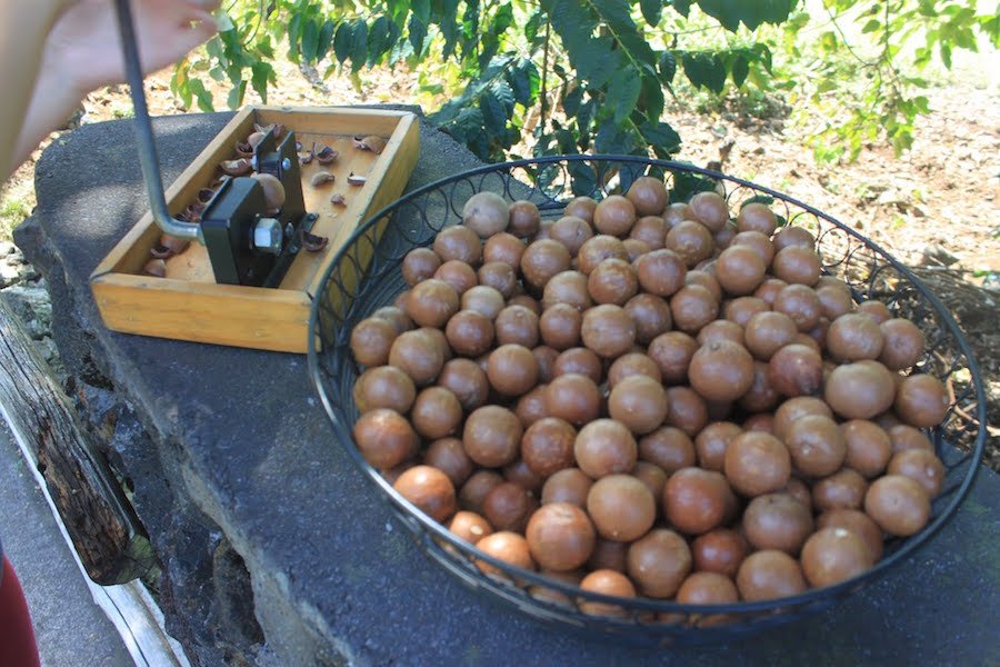 Big Island, North Kona, HawaiiAussi, j’en ai profité pour faire le plein de macadamia, en ramassant les coques tombées au sol. Malheureusement, il n’y a pas que moi qui aime ça… Je me suis fait pourchasser par la basse-cour de la ferme ! Alors nous nous sommes rattrapés sur les oranges, que nous avons piqués directement sur les arbres ! Elles sont très juteuses et pleines de goût !